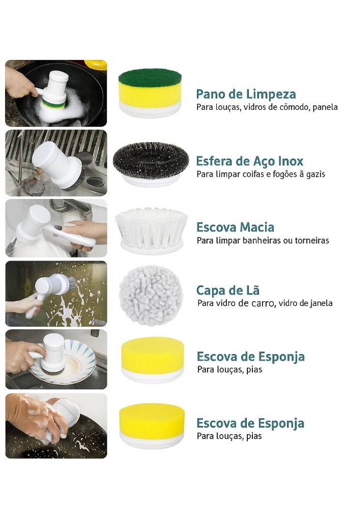 Com a Escova Mágica, você não precisa mais de várias escovas, panos ou produtos caros. É só escolher o acessório certo, acoplar e deixar que a rotação automática faça o trabalho pesado para você.